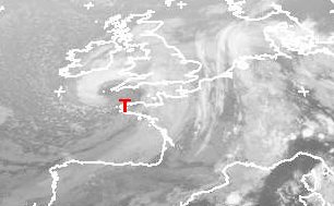 Über dem Ärmelkanal erkennt man das bereits okkludierte Tiefdruckgebiet 'Marian'. Seine Wolken bringen von Großbritannien über Nordfrankreich bis nach Spanien teils kräftigen Regen. Es wird am Dienstag nach Osten weiter ziehen und auch in Deutschland für teils ergiebige Regenfälle sorgen. (Quelle: http://www.sat.dundee.ac.uk)