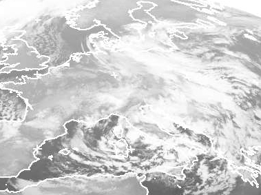 Tief 'Paul' hat sich in zwei Zentren getrennt. Während das südliche Tief weiter über Italien liegt und am Mittelmeer Schauer und Gewitter bringt, ist das andere Tief nach Norden gezogen und liegt jetzt über Polen. Mit seinen Wolken zieht es nach Deutschland. Dabei bringt es vor allem in der Nacht teils kräftigen Regen oder Schneefall. (Bildquelle: NERC Satellite Receiving Station, Dundee University, Scotland, http://www.sat.dundee.ac.uk/)