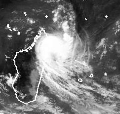 Der Zyklon 'Jaya' liegt mit mittleren Windgeschwindigkeiten bis 150 km/h und Böen bis 185 km/h an der Nordostküste von Madagaskar, wo er auch kräftigen Regen bringt. Er zieht weiter ins Landesinnere und schwächt sich dabei deutlich ab. (Bildquelle: NERC Satellite Receiving Station, Dundee University, Scotland, http://www.sat.dundee.ac.uk/)