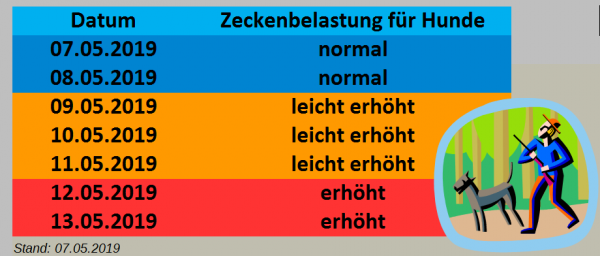 Zwar sind die Temperaturen aktuell noch nicht zeckenfreundlich, das ändert sich in den kommenden Tagen mit steigenden Temperaturen aber. Feuchte Waldböden treiben das Zeckenrisiko für Mensch und Tier bis zu Beginn der neuen Woche zudem deutlich nach oben.