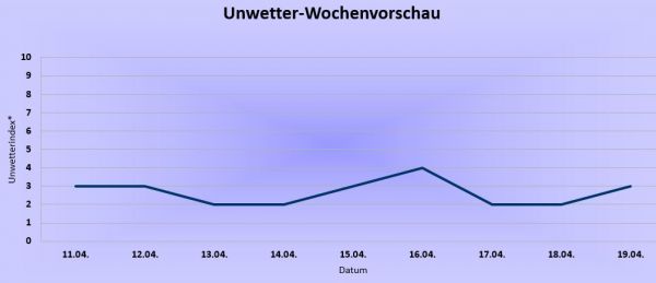 Die Gefahren durch Unwetter bleiben in der neuen Woche eher gering, jedoch gelangt in einer teils feuchtmilden Südwetströmung zum Teil schon recht schwüle Luft nach Deutschland, so dass sich regional Schauer und zum Teil auch Gewitter entwickeln können.