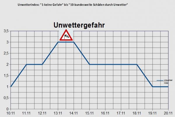 Die Unwettergefahr für die kommende Wetterwoche bleibt weitgehend gering. Bei milden Herbsttemperaturen herrscht meist ruhiges Herbstwetter, jedoch kann es um Umfeld der Küstenregionen zeitweise windig werden, dabei sind vereinzelt stürmische Böen möglich.