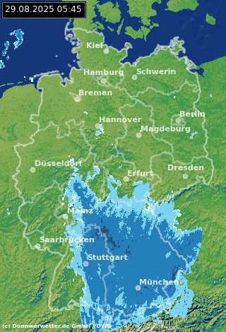 Zur Zeit kräftiger Regen im Süden Deutschlands.