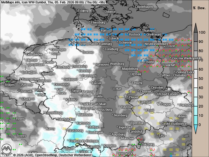 In Hamburg sowie Mecklenburg-Vorpommern dominiert hingegen Schneefall, gefrierender Regen spielt eine geringere Rolle.