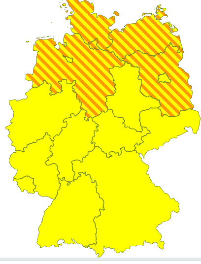 Warnungen vor markantem Wetter (Warnstufe 2) bestehen zur Zeit für den Nordosten Niedersachsens, z. B für die Regionen um Lüneburg und Uelzen. Hier müssen Autofahrer neben Schneefall auch überfrierende Nässe einplanen. Ebenfalls Probleme im Berufsverkehr könnten auf den Osten Schleswig-Holsteins sowie den Westen Mecklenburg-Vorpommerns zukommen.