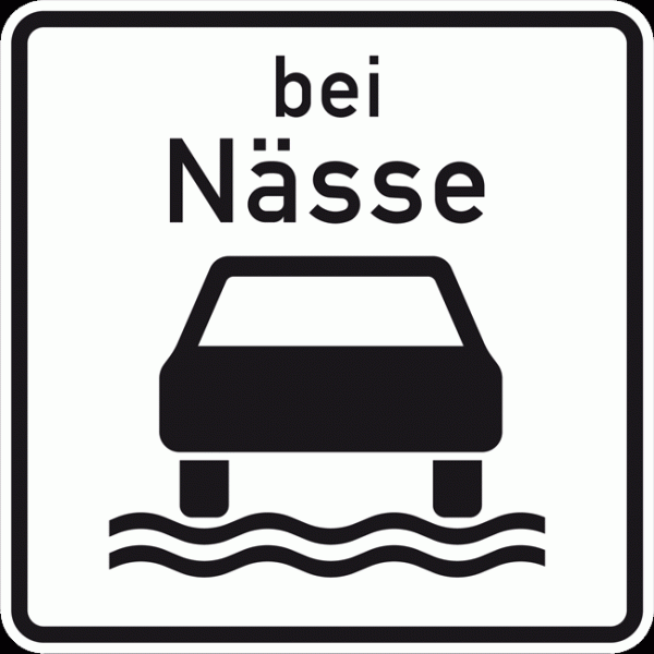 Dieses Zusatzschild - unter dem angegebenen Tempolimit - mit einem Auto und der Aufschrift "bei Nässe" kennen wir alle. Die Geschindigkeitsbegrenzung tritt immer dann ein, wenn die Fahrbahn nass ist. Doch die Definition von „nass“ ist für viele eine andere. „Nass“ ist laut Rechsprechung eine Fahrbahn, wenn sie mit einem Wasserfilm überzogen ist.