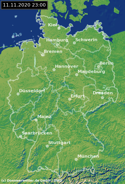 Radarbild von Mittwoch, 11.11.2020 um 23.00 Uhr