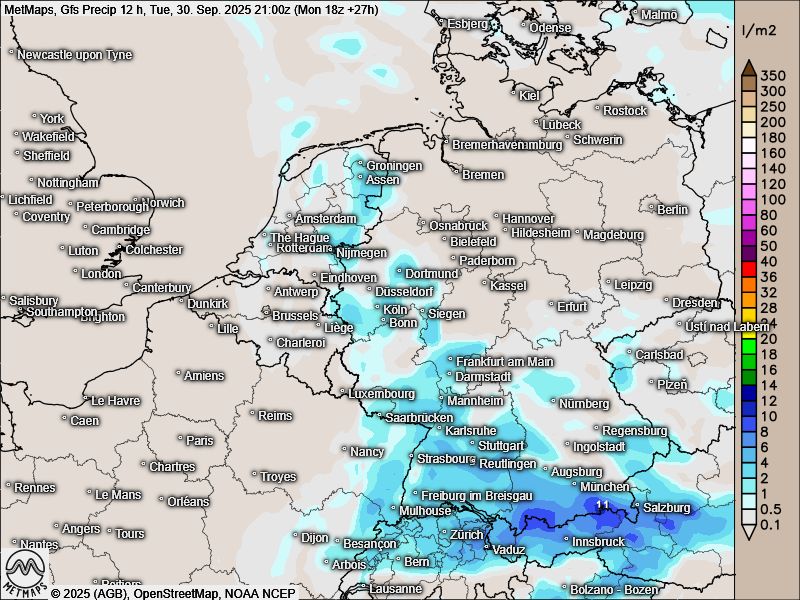 Am heutigen Dienstag fallen nachmittags einzelne Schauer, im Süden auch etwas länger Regen:
