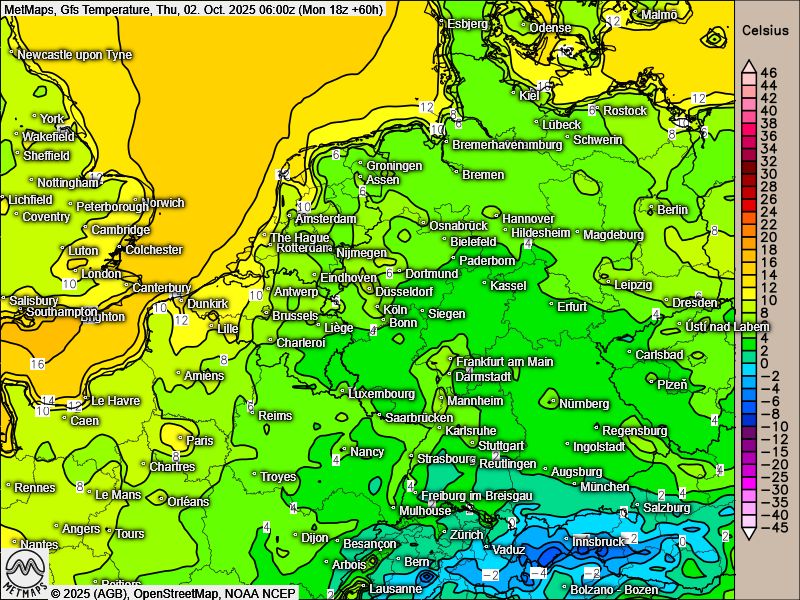 Die GFS-Temperatur- und Wetterkarten für die nächsten Tage: