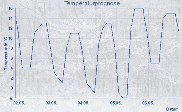 In den Mittelgebirgen kann Luftfrost auftreten, wie unsere Temperaturprognose für das Wochenende zeigt. Bis -2 Grad C geht es im Sauerland und der Eifel runter.