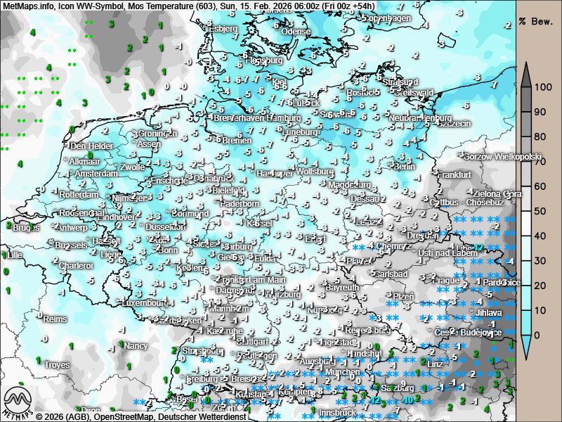 Wetter- / Temperaturkarte Deutschland, 15.02. (06:00 Uhr)