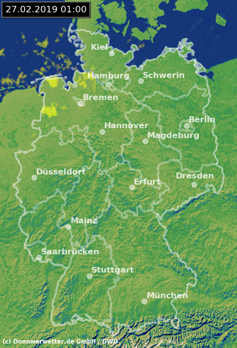 Radarbild von Mittwoch, 27.02.2019 um 01.00 Uhr
