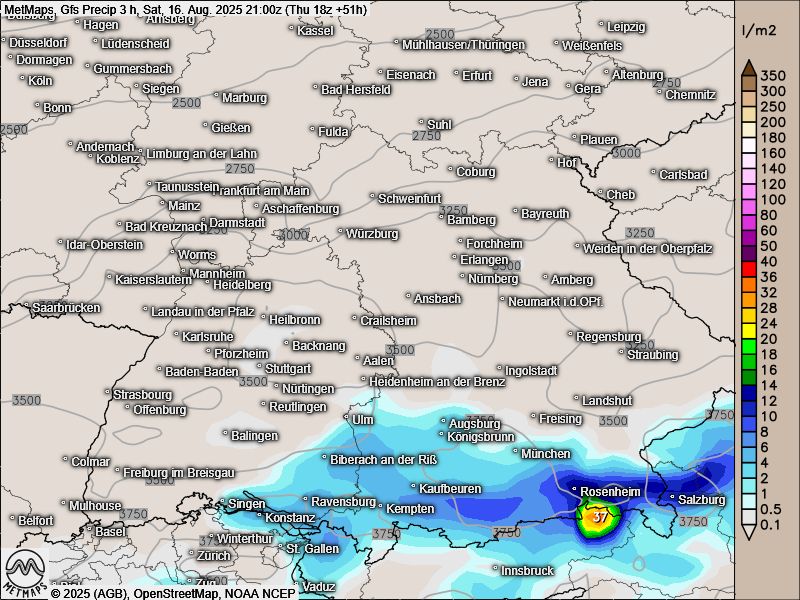 Besonders in Alpennähe und vor allem am morgigen Samstag muss punktuell auch mit Starkregen  gerechnet werden.