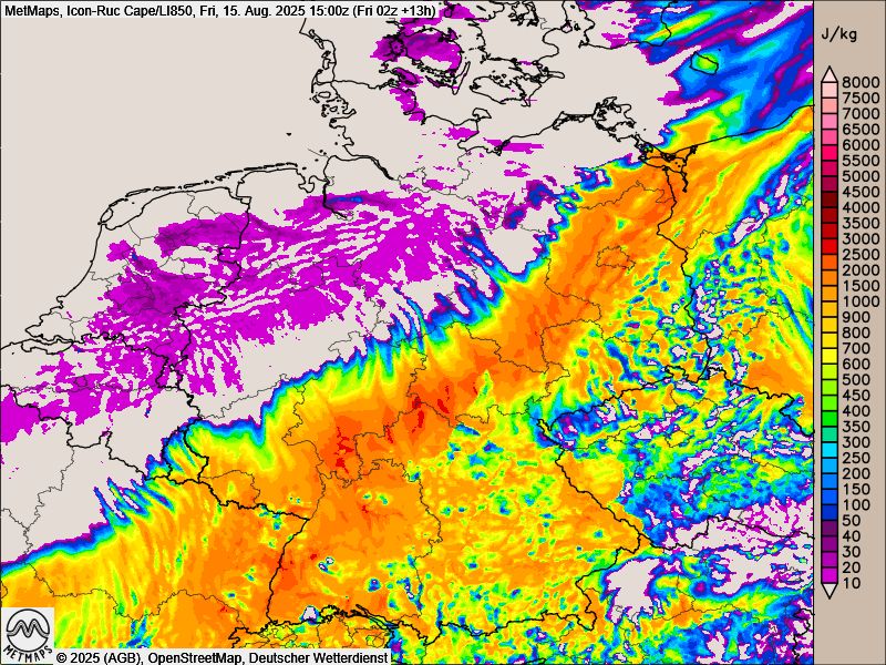 Langsam aber sicher fließt nun die kühlere und trockenere Luft nach Deutschland ein; Gewitter gibt es heute und morgen lokal im Süden.