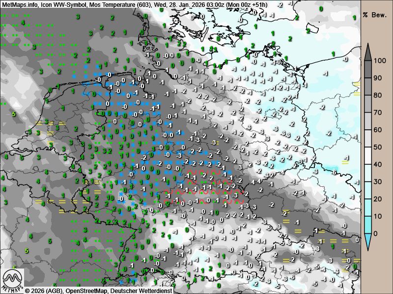 Die Wetterkarte für Mittwochfrüh (03:00 Uhr) nach ICON: