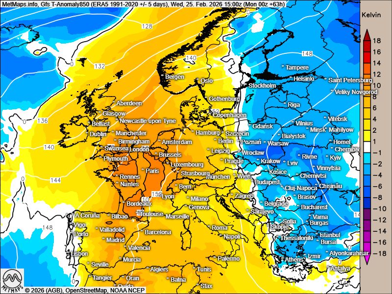 Zum Wochenbeginn zeigen die aktuellen Wettermodelle für die kommenden Tage den erwarteten Temperatursprung - sehr milde Luftmassen erreichen nun weite Teile Europas.