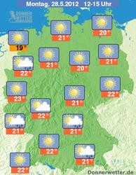 Der Pfingsmontag teilt Deutschland dann wettertechnisch in eine sonnige Nord- und eine etwas wechselhaftere Südhälfte. Während an den deutschen Küsten und im Westen des Landes sonniges Wetter bei Werten zwischen 20 und 23 Grad zu erwarten sind, ist in der Südhälfte - außer im Südwesten - neben Sonne auch mit Schauern zu rechnen. Die Temperaturen liegen hier bei 20 °C.