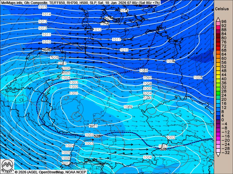 Gleichzeitig setzt sich die Kaltluft langsam in Richtung Alpen durch. Insgesamt beruhigt sich die Wetterlage schrittweise.