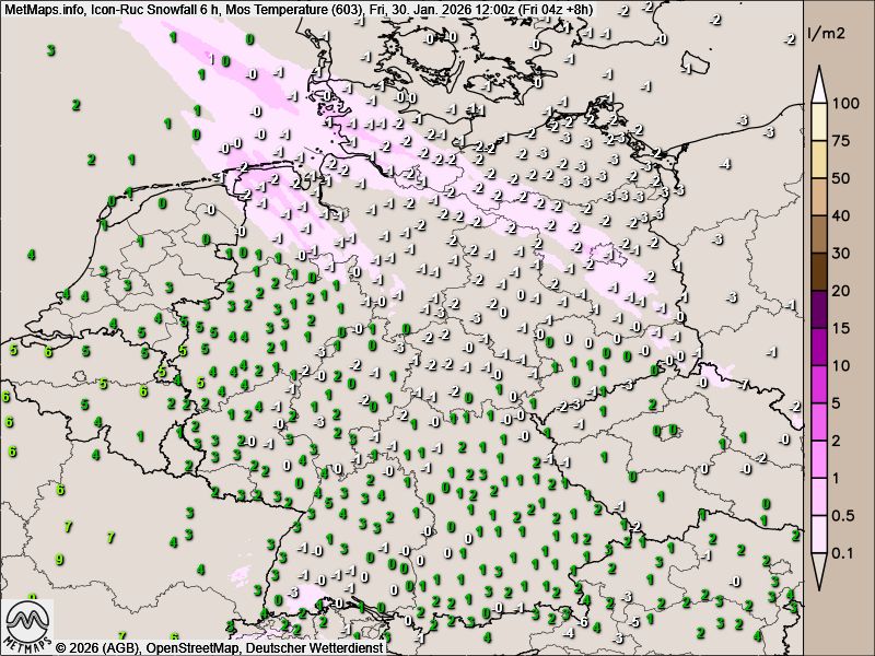 Während im Norden und Osten Deutschlands heute noch vereinzelt Schnee fällt, setzt sich im Westen und Südwesten bereits deutlich mildere Luft durch. Dort steigen die Temperaturen am heutigen Freitag auf über 5 Grad Celsius, morgen werden örtlich sogar nahezu 10 Grad Celsius erreicht.