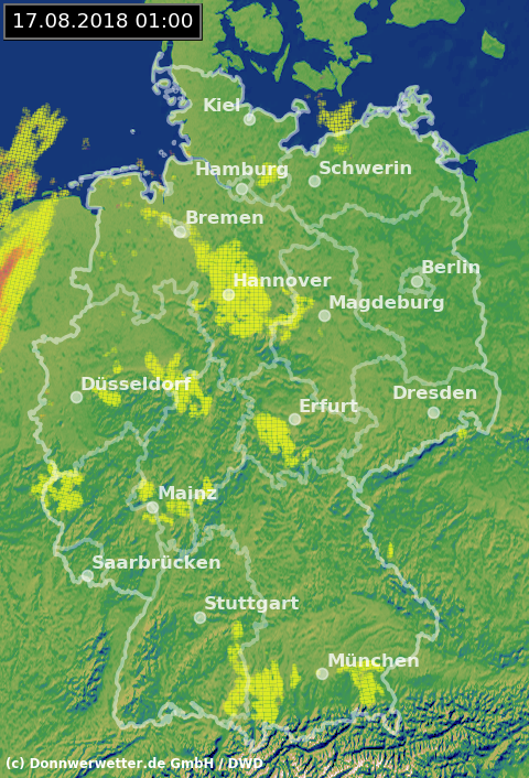 Radarbild von Freitag, 17.08.2018 um 01.00 Uhr