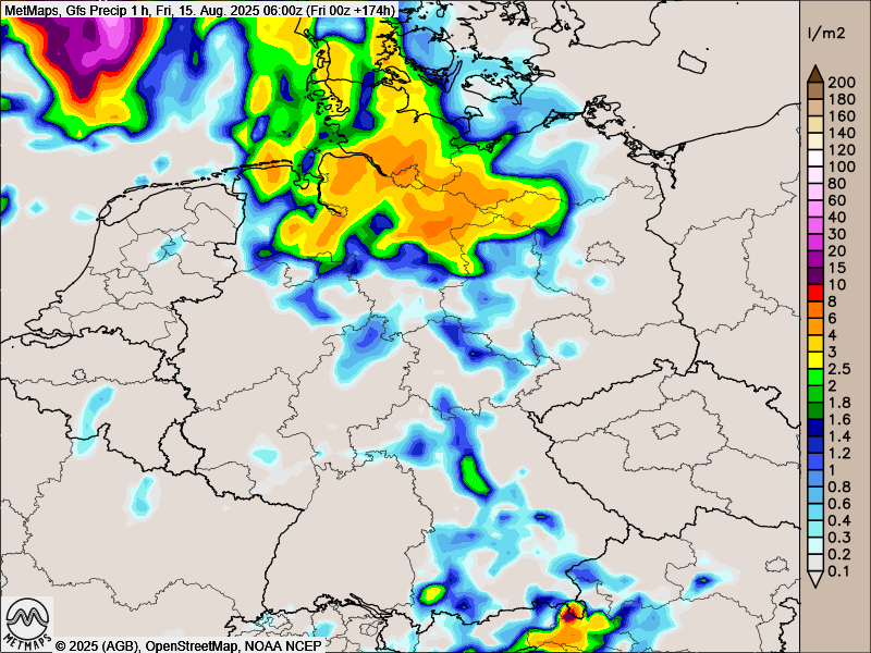 Die Karte zeigt die Stundenregenmenge (bis 06:00 Uhr) für den kommenden Freitag.