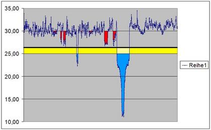 Der optimale Temperaturbereich im Innenbereich liegt bei einer Außentemperatur deutlich über 30 Grad nach Angabe von Medizinern bei 25-26 Grad. So ist die Temperaturdifferenz zwischen Außen und Innen möglichst niedrig (4-5 Grad). Bei den nicht klimatisierten Geschäften wird diese Temperatur nicht erreicht. Die Temperaturen verbleiben in diesen Geschäften bei 26-27 Grad und liegen knapp über dem optimalen Bereich. In einzelnen Geschäften, wie in einer Tankstelle, werden sogar über 30 Grad C gemessen. Ungünstig fällt das Klima in den gekühlten Geschäften aus. Hier werden Temperaturen von nur 22 und in einem Supermarkt von sogar nur 18-20 Grad gemessen. Der Einbruch auf 12 Grad ist durch den Besuch der Kühltheke bedingt.