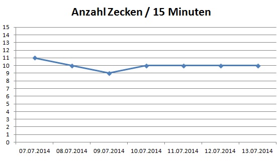 Daher kommt es gerade am Montag und Dienstag zu einem erhöhten Zeckenaufkommen. Bis zu 11 Zecken in 15 Minuten sind dann möglich.